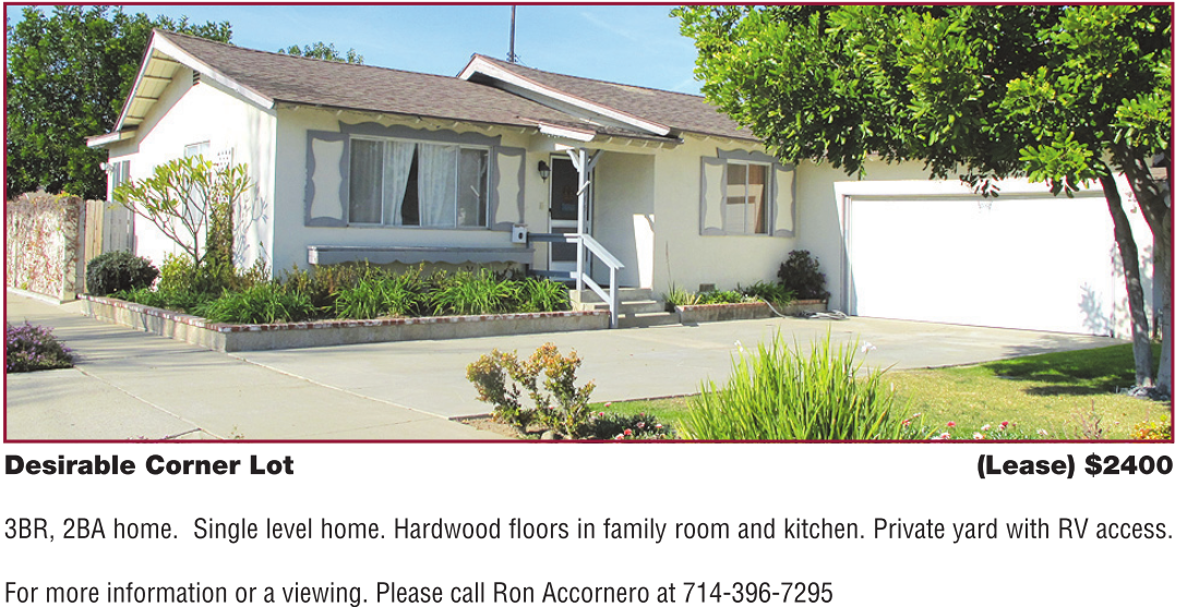 For more information or a viewing. Please call Ron Accornero at 714-396-7295