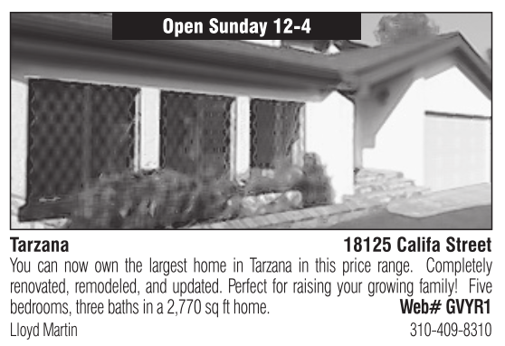 Tarzana 18125 Califa Street You can now own the largest home in Tarzana in this price range. Completely renovated, remodeled, and updated. Perfect for raising your growing family! Five bedrooms, three baths in a 2,770 sq ft home. Web# GVYR1