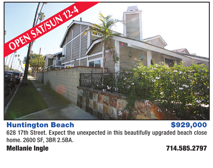Huntington Beach $929,000 628 17th Street. Expect the unexpected in this beautifully upgraded beach close home. 2600 SF, 3BR 2.5BA. Mellanie Ingle 714.585.2797