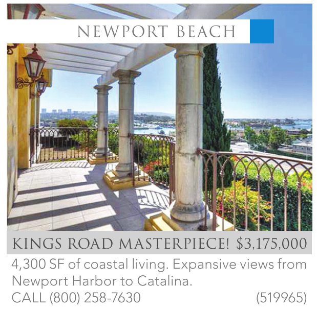 KINGS ROAD MASTERPIECE! $3,175,000 4,300 SF of coastal living. Expansive views from Newport Harbor to Catalina. CALL (800) 258-7630 (519965)