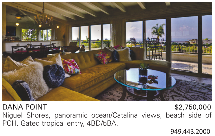 DANA POINT $2,750,000 Niguel Shores, panoramic ocean/Catalina views, beach side of PCH. Gated tropical entry, 4BD/5BA.