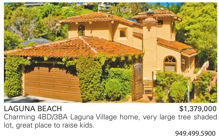 LAGUNA BEACH $1,379,000 Charming 4BD/3BA Laguna Village home, very large tree shaded lot, great place to raise kids.