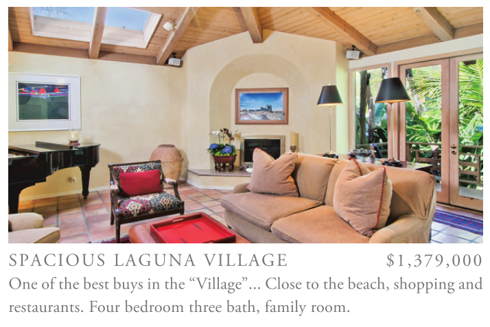 SPACIOUS LAGUNA VILLAGE $1,379,000 One of the best buys in the “Village”... Close to the beach, shopping and restaurants. Four bedroom three bath, family room.