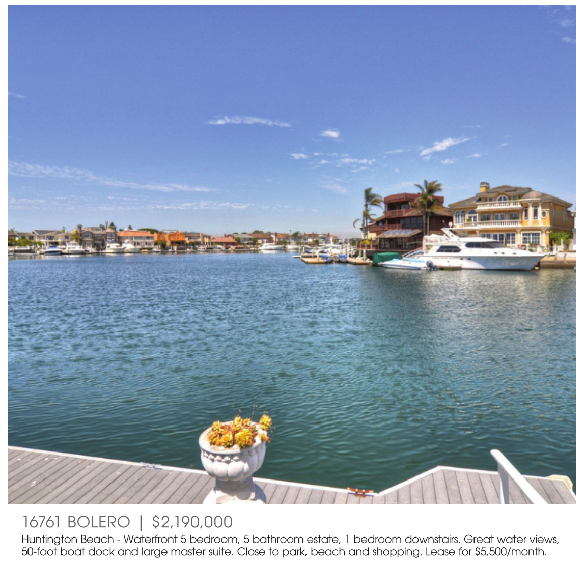 Huntington Beach - Waterfront 5 bedroom, 5 bathroom estate, 1 bedroom downstairs. Great water views, 50-foot boat dock and large master suite. Close to park, beach and shopping. Lease for $5,500/month.