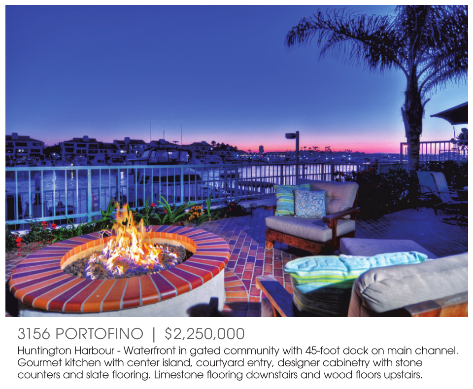 Huntington Harbour - Waterfront in gated community with 45-foot dock on main channel. Gourmet kitchen with center island, courtyard entry, designer cabinetry with stone counters and slate flooring. Limestone flooring downstairs and wood floors upstairs.
