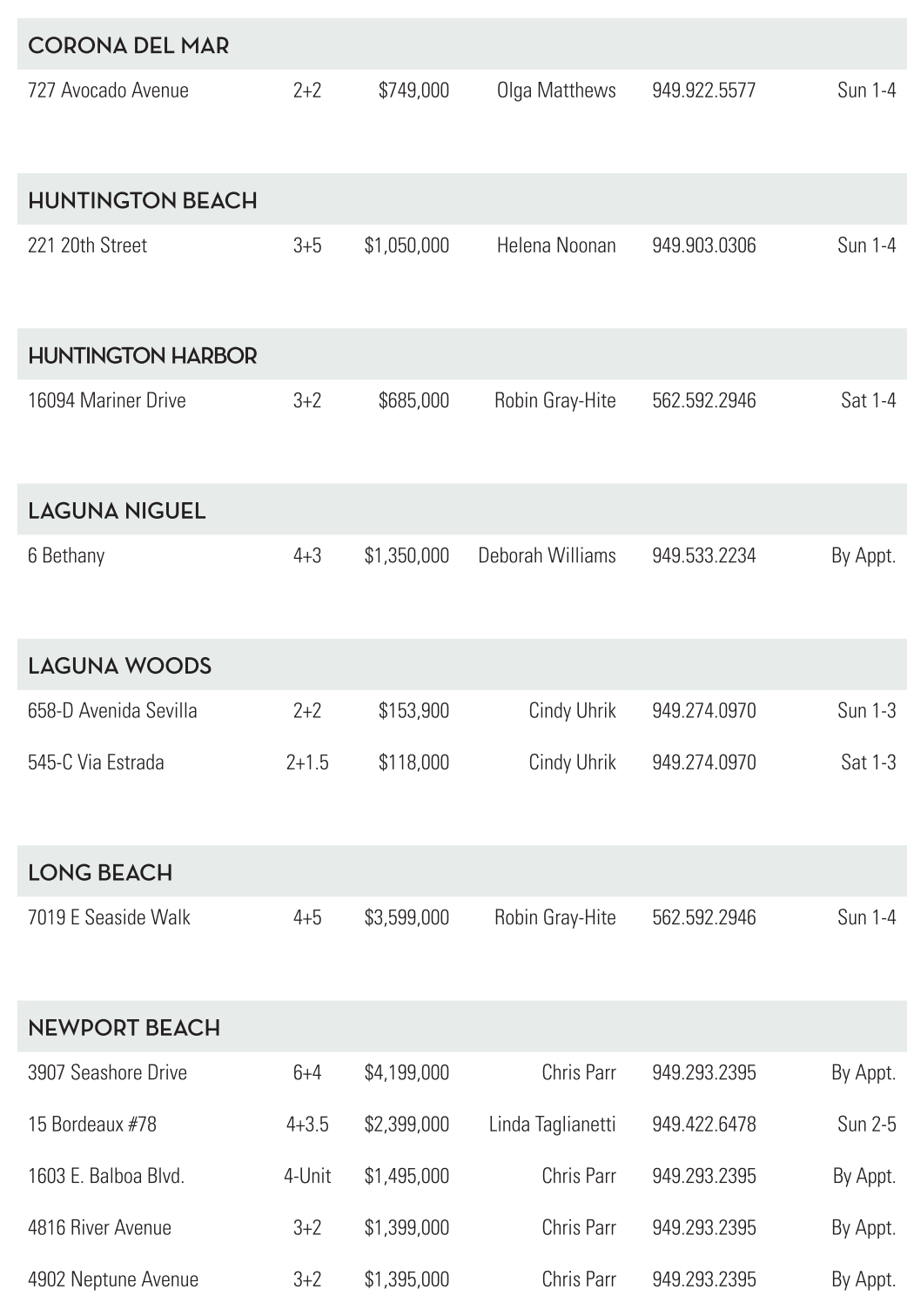 16094 Mariner Drive 3+2 $685,000 Robin Gray-Hite 562.592.2946 Sat 1-4