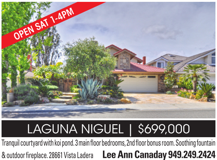 Tranquil courtyard with koi pond. 3 main floor bedrooms, 2nd floor bonus room. Soothing fountain & outdoor fireplace. 28661 Vista Ladera Lee Ann Canaday 949.249.2424