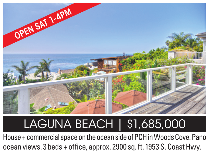 House + commercial space on the ocean side of PCH in Woods Cove. Pano ocean views. 3 beds + office, approx. 2900 sq. ft. 1953 S. Coast Hwy.