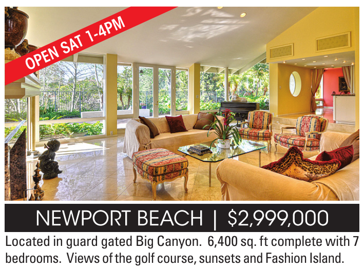 Located in guard gated Big Canyon. 6,400 sq. ft complete with 7 bedrooms. Views of the golf course, sunsets and Fashion Island.