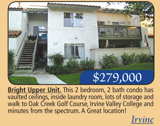 Bright Upper Unit. This 2 bedroom, 2 bath condo has vaulted ceilings, inside laundry room, lots of storage and walk to Oak Creek Golf Course, Irvine Valley College and minutes from the spectrum. A Great location!