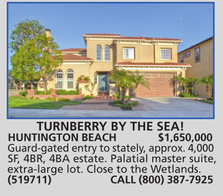 HUNTINGTON BEACH $1,650,000 Guard-gated entry to stately, approx. 4,000 SF, 4BR, 4BA estate. Palatial master suite, extra-large lot. Close to the Wetlands. (519711) CALL (800) 387-7925
