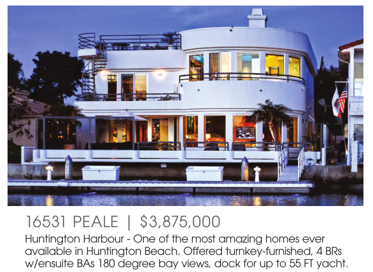 Huntington Harbour - One of the most amazing homes ever available in Huntington Beach. Offered turnkey-furnished, 4 BRs w/ensuite BAs 180 degree bay views, dock for up to 55 FT yacht.