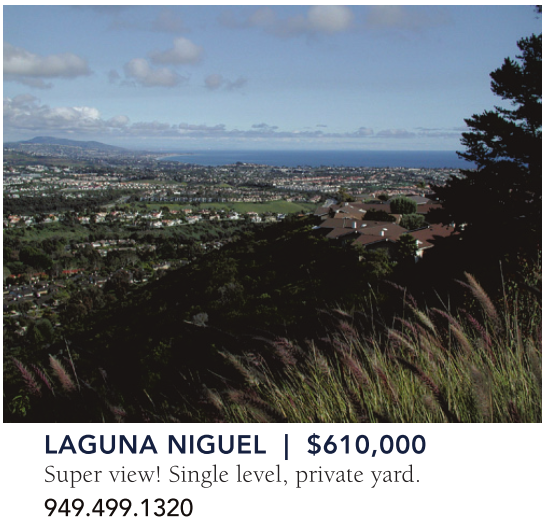 LagUNa NigUEL | $610,000 Super view! Single level, private yard. 949.499.1320