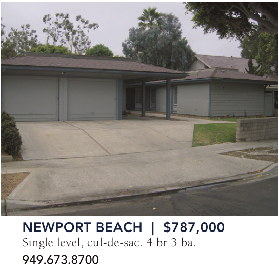 NEWPORT BEACH | $787,000 Single level, cul-de-sac. 4 br 3 ba. 949.673.8700