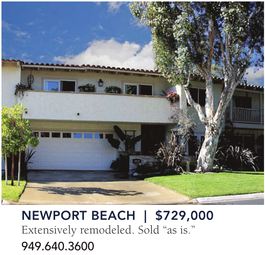 NEWPORT BEACH | $729,000 Extensively remodeled. Sold “as is.” 949.640.3600