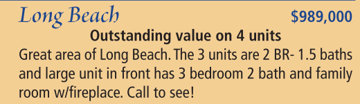Great area of Long Beach. The 3 units are 2 BR- 1.5 baths and large unit in front has 3 bedroom 2 bath and family room w/fireplace. Call to see!