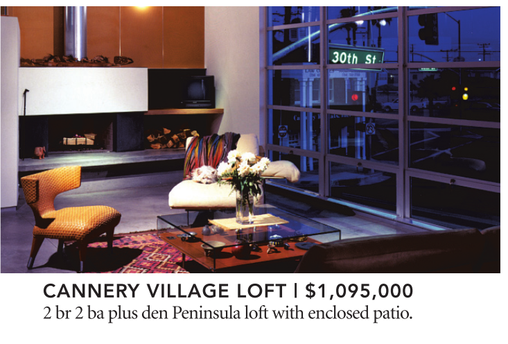 CANNERY VILLAGE LOFT | $1,095,000 2 br 2 ba plus den Peninsula loft with enclosed patio.