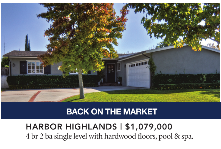 HARBOR HIGHLANDS | $1,079,000 4 br 2 ba single level with hardwood floors, pool & spa.