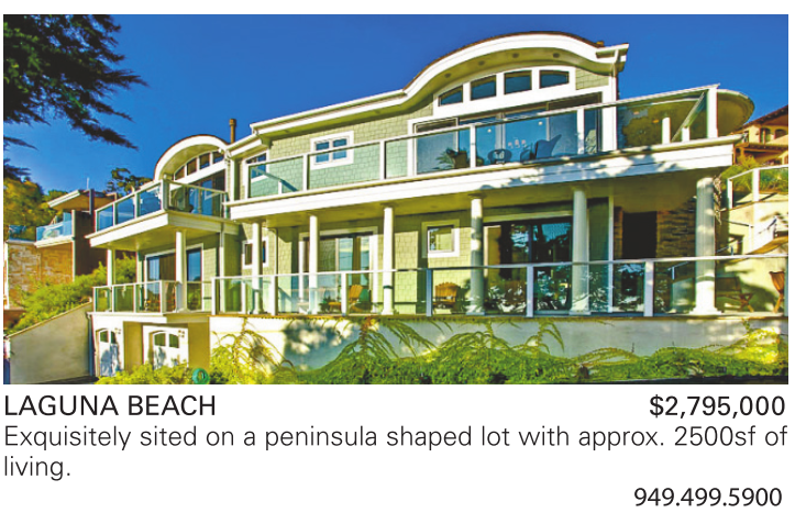 LAGUNA BEACH $2,795,000 Exquisitely sited on a peninsula shaped lot with approx. 2500sf of living.