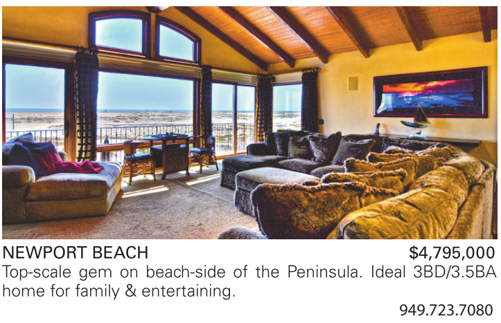 NEWPORT BEACH $4,795,000 Top-scale gem on beach-side of the Peninsula. Ideal 3BD/3.5BA home for family & entertaining.