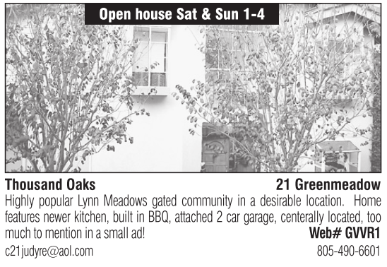 Thousand Oaks 21 Greenmeadow Highly popular Lynn Meadows gated community in a desirable location. Home features newer kitchen, built in BBQ, attached 2 car garage, centerally located, too much to mention in a small ad! Web# GVVR1