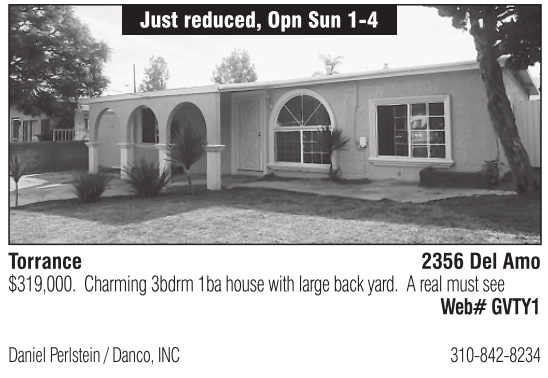 Torrance 2356 Del Amo $319,000. Charming 3bdrm 1ba house with large back yard. A real must see Web# GVTY1