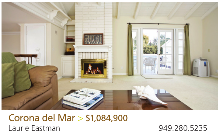 Corona del Mar > $1,084,900 Laurie Eastman 949.280.5235