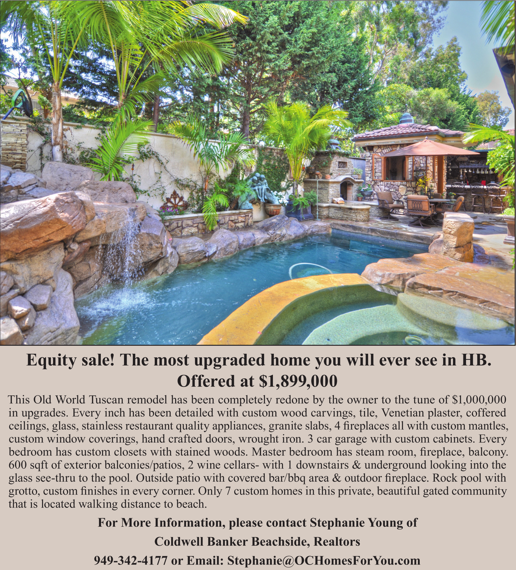 For More Information, please contact Stephanie Young of Coldwell Banker Beachside, Realtors 949-342-4177 or Email: Stephanie@OCHomesForYou.com