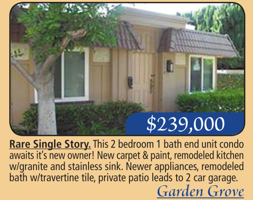 Rare Single Story. This 2 bedroom 1 bath end unit condo awaits it’s new owner! New carpet & paint, remodeled kitchen