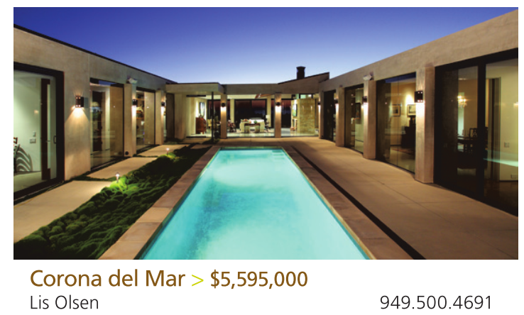 Corona del Mar > $5,595,000 Lis Olsen 949.500.4691