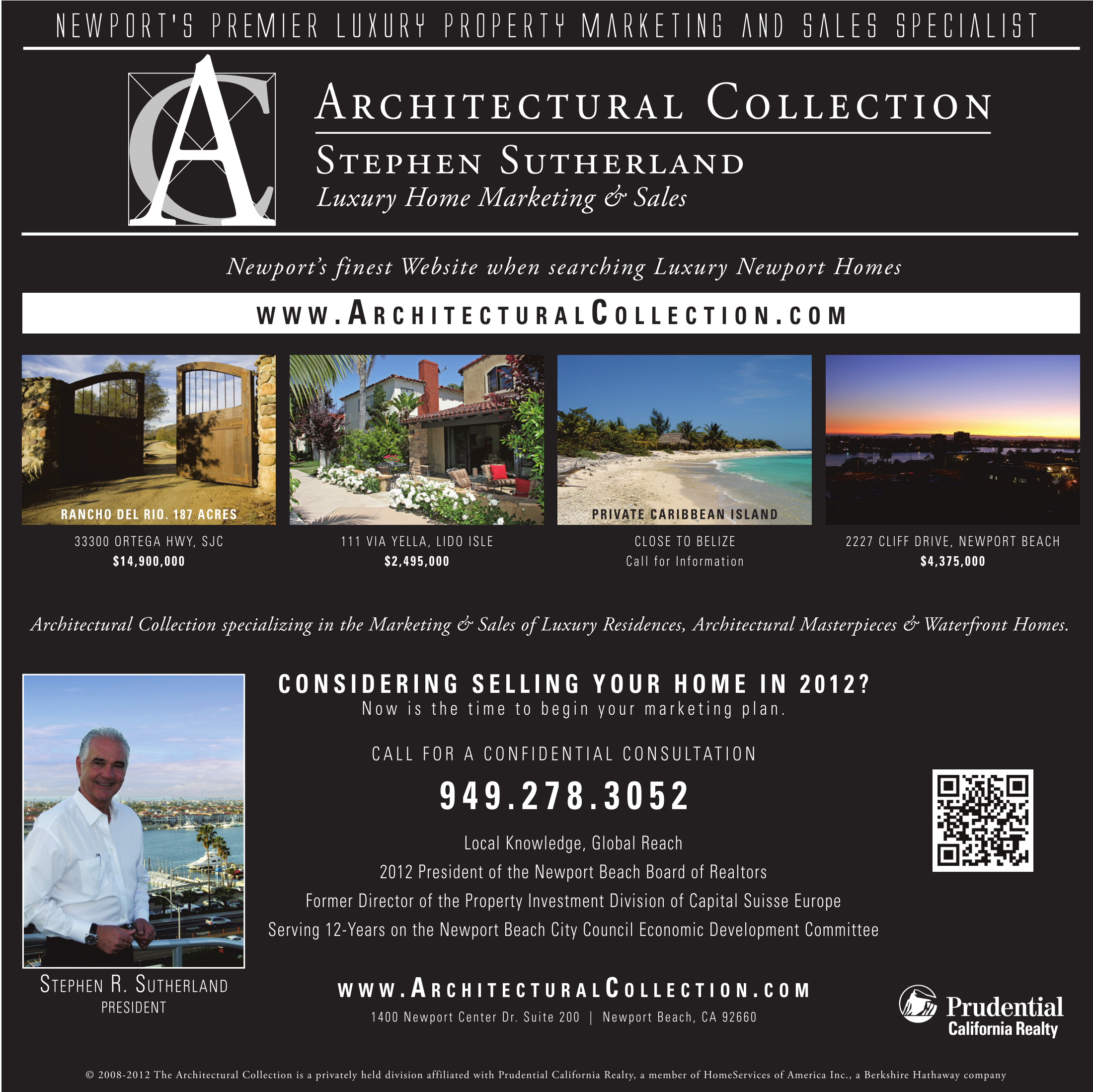 Local Knowledge, Global Reach 2012 President of the Newport Beach Board of Realtors Former Director of the Property Investment Division of Capital Suisse Europe Serving 12-Years on the Newport Beach City Council Economic Development Committee