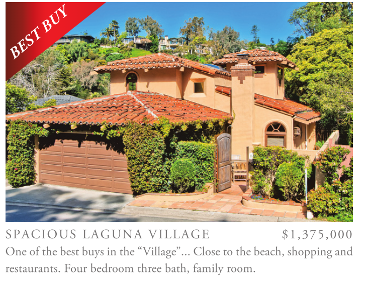 SPACIOUS LAGUNA VILLAGE $1,375,000 One of the best buys in the “Village”... Close to the beach, shopping and restaurants. Four bedroom three bath, family room.
