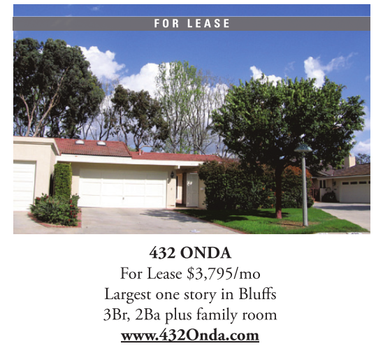 432 ONDA For Lease $3,795/mo Largest one story in Bluffs 3Br, 2Ba plus family room www.432Onda.com
