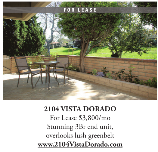2104 VISTA DORADO For Lease $3,800/mo Stunning 3Br end unit, overlooks lush greenbelt www.2104VistaDorado.com