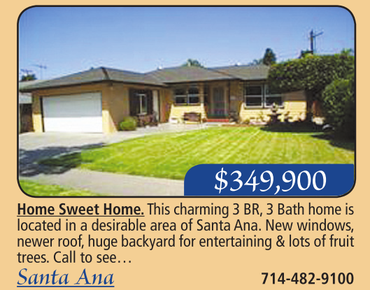 newer roof, huge backyard for entertaining & lots of fruit trees. Call to see… Santa Ana 714-482-9100