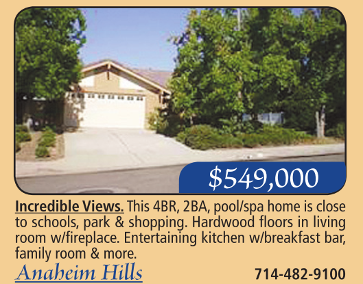 room w/fireplace. Entertaining kitchen w/breakfast bar, family room & more. Anaheim Hills 714-482-9100