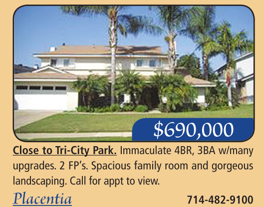 Close to Tri-City Park. Immaculate 4BR, 3BA w/many upgrades. 2 FP’s. Spacious family room and gorgeous landscaping. Call for appt to view. Placentia 714-482-9100