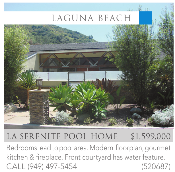 LA SERENITE POOL-HOME $1,599,000 Bedrooms lead to pool area. Modern floorplan, gourmet kitchen & fireplace. Front courtyard has water feature. CALL (949) 497-5454 (520687)