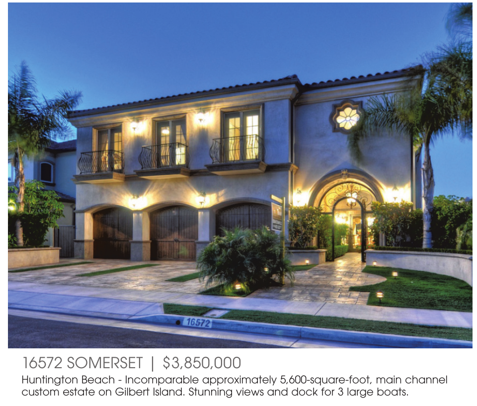 Huntington Beach - Incomparable approximately 5,600-square-foot, main channel custom estate on Gilbert Island. Stunning views and dock for 3 large boats.