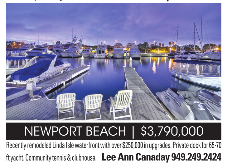 Recently remodeled Linda Isle waterfront with over $250,000 in upgrades. Private dock for 65-70 ft yacht. Community tennis & clubhouse. Lee Ann Canaday 949.249.2424
