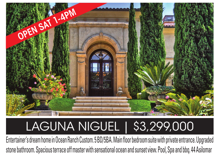 Entertainer’s dream home in Ocean Ranch Custom. 5 BD/5BA. Main floor bedroom suite with private entrance. Upgraded stone bathroom. Spacious terrace off master with sensational ocean and sunset view. Pool, Spa and bbq. 44 Asilomar