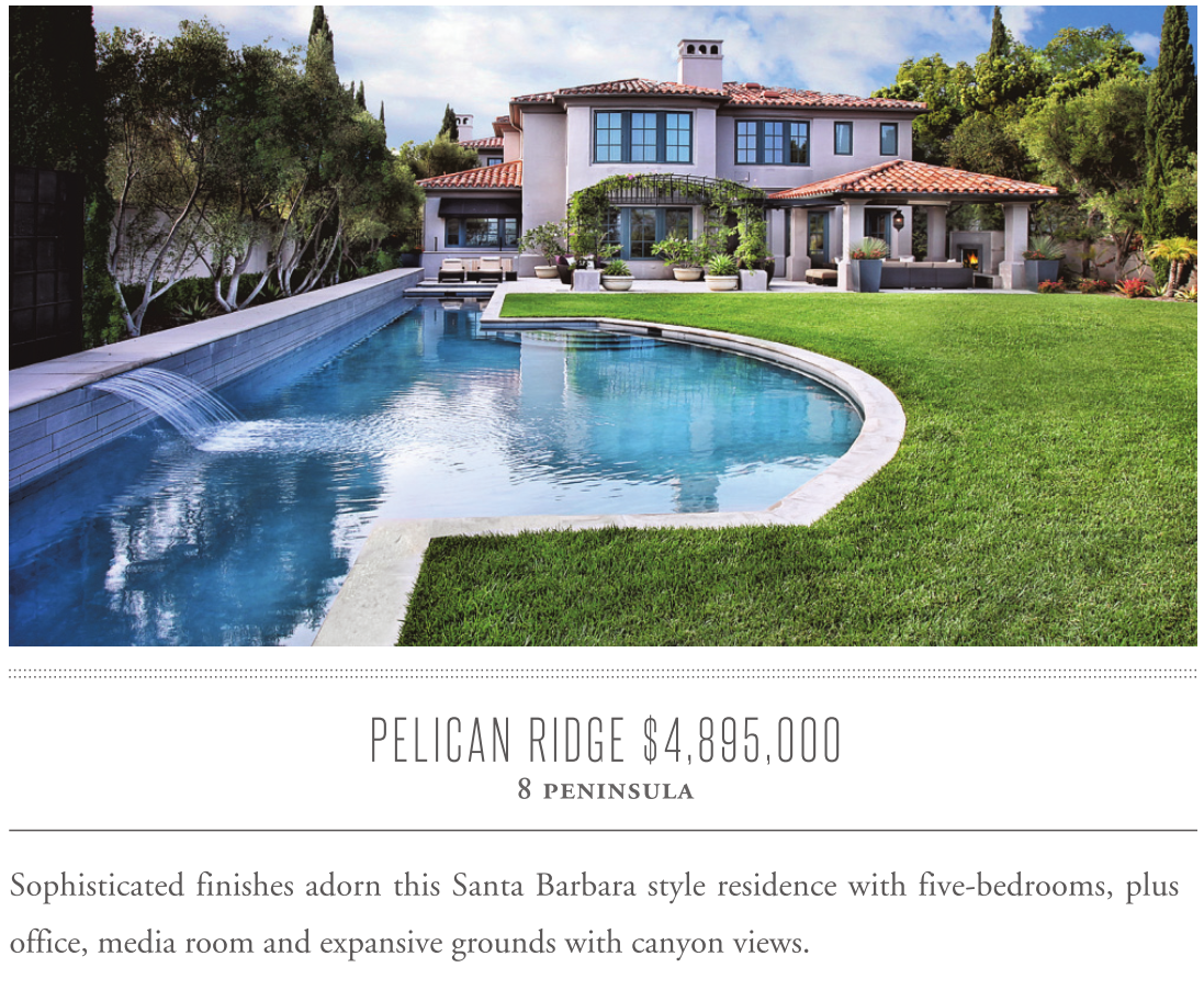 Sophisticated finishes adorn this Santa Barbara style residence with five-bedrooms, plus office, media room and expansive grounds with canyon views.