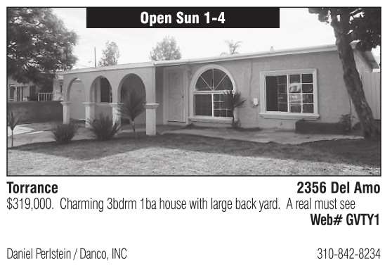 Torrance 2356 Del Amo $319,000. Charming 3bdrm 1ba house with large back yard. A real must see Web# GVTY1