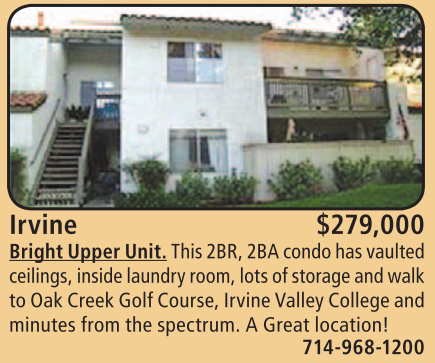 Irvine $279,000 Bright Upper Unit. This 2BR, 2BA condo has vaulted
