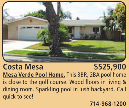 Costa Mesa $525,900 Mesa Verde Pool Home. This 3BR, 2BA pool home