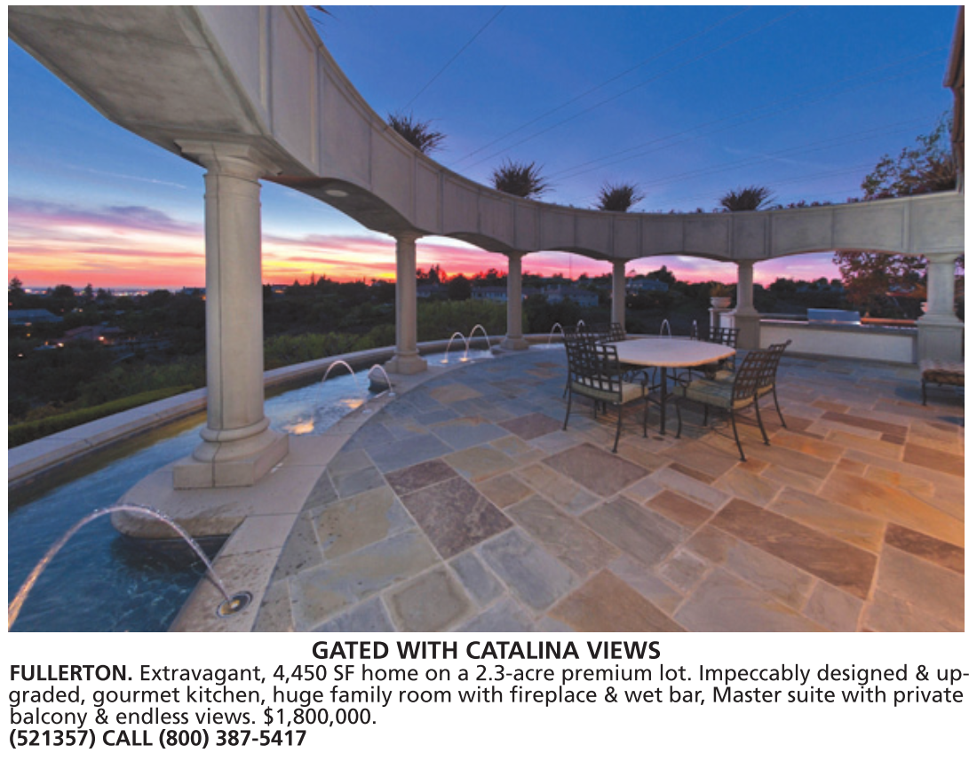 GATED WITH CATALINA VIEWS FULLERTON. Extravagant, 4,450 SF home on a 2.3-acre premium lot. Impeccably designed & upgraded,