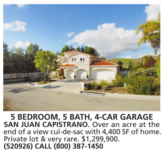 5 BEDROOM, 5 BATH, 4-CAR GARAGE SAN JUAN CAPISTRANO. Over an acre at the