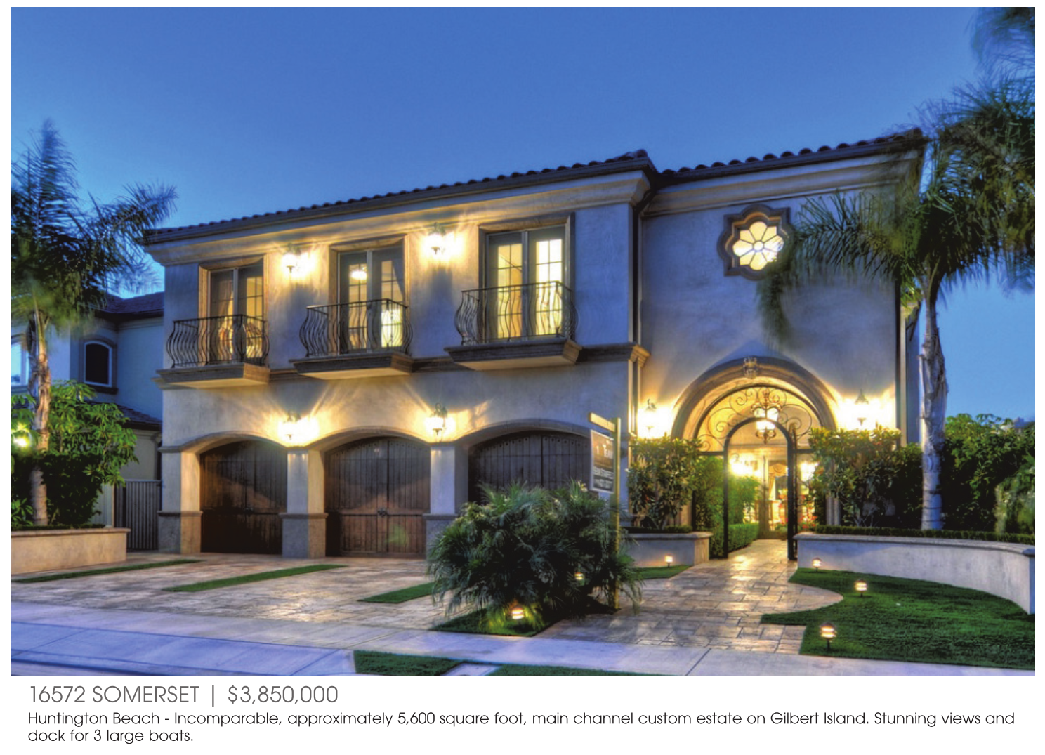 Huntington Beach - Incomparable, approximately 5,600 square foot, main channel custom estate on Gilbert Island. Stunning views and dock for 3 large boats.