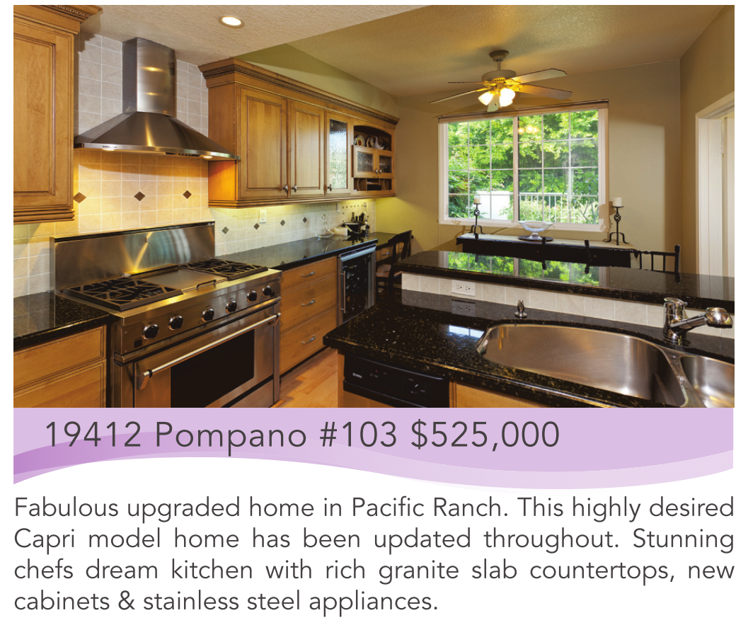 Fabulous upgraded home in Pacific Ranch. This highly desired Capri model home has been updated throughout. Stunning chefs dream kitchen with rich granite slab countertops, new cabinets & stainless steel appliances.