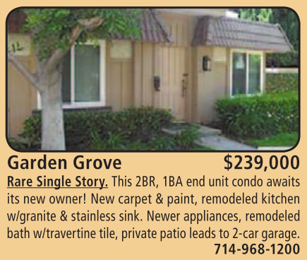 Garden Grove $239,000 Rare Single Story. This 2BR, 1BA end unit condo awaits